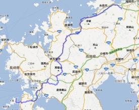 野方 → 二丈浜玉有料道路 → 唐津 → 伊万里 → 有田 → 西海橋 → 大島(昼食) → 西海パールライン → 早岐 → 武雄 → 八幡岳 → 相知町 → 唐津 → 野方